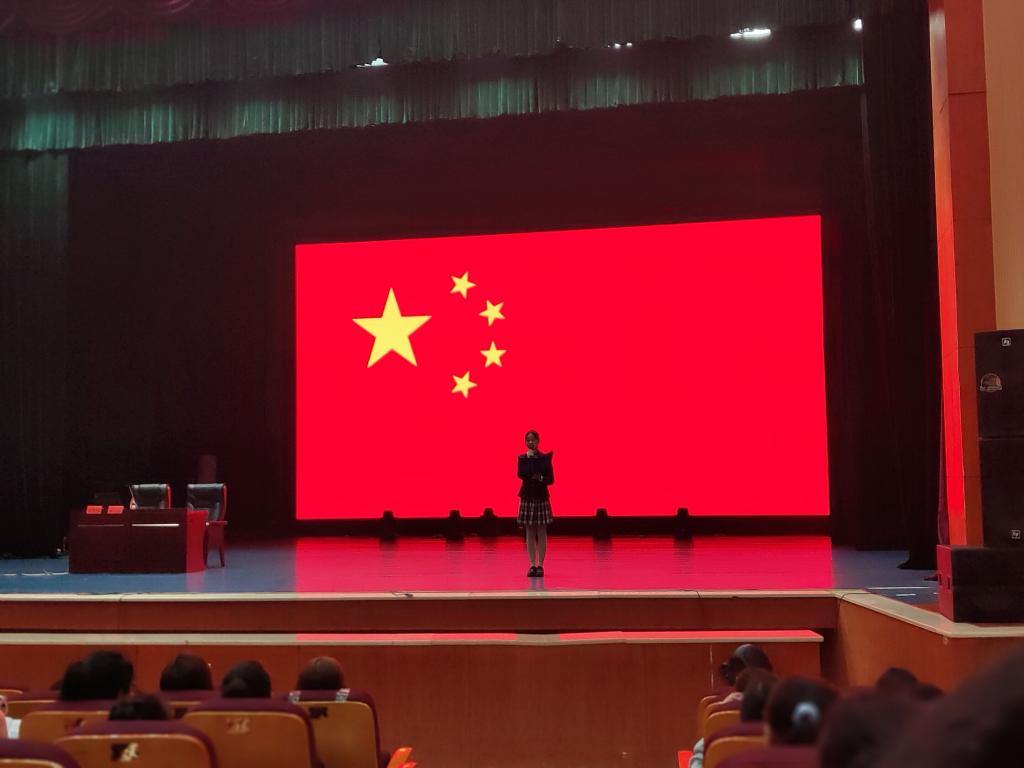 《义勇军进行曲》激昂响起,国旗下的感言催人奋进。数学与计算科学学院何梦倩同学在国旗下发表《传承红色基因,逐梦星辰大海》主题演讲,激励广大青年要爱国爱民,锤炼品德,勇于创新,实学实干,不断坚定“四个自信”,自觉树立和践行社会主义核心价值观,以聪明才智奉献国家,以开拓进取服务社会,坚定不移传承红色基因,弘扬革命传统,用力创造不愧于党、不愧于人民、不愧于时代的新业绩。